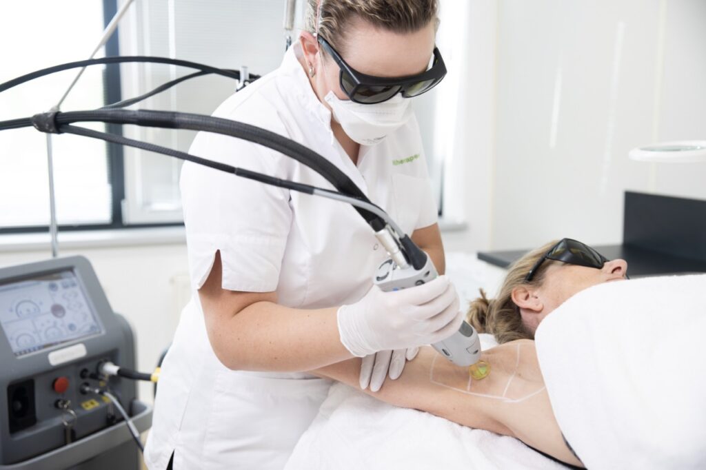 Na het laseren kan de huid licht rood zijn. Dit is normaal en trekt snel weg. Vermijd intensief sporten, deodorant en warmte direct na de behandeling. Hydrateren is aanbevolen.